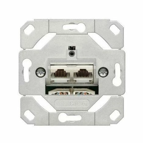 Gira Einsatz Netzwerk-Anschlussdose Cat.6A 2fach Schneidklemmtechnik Merkmale: – Abgeschirmte Netzwerk-Anschlussdose Cat.6A mit zwei Anschlussbuchsen RJ45 (8 8) für Datenübertragungsraten bis 10 Gbit-Ethernet gemäß IEEE 802.3an. – 45 Schrägauslass für Brüstungskanal-, Bodentank- und Unterputz-Einbau. – Leitungseinführung aus allen Richtungen in 8 x 45 Schritten möglich. Hinweise : – Nur für Schraubbefestigung. – Achtung! Bauraum für Stecker und Biegeradien beachten. – Installationsempfehlung: Kaiser Elektronic-Dosen Unterputz-Montage: Kaiser Best.-Nr.: 1068-02 Hohlwandmontage: Kaiser Best.-Nr.: 9062-94 Betoninstallation: Kaiser Best.-Nr.: 1268-40 – Nur für Schraubbefestigung.