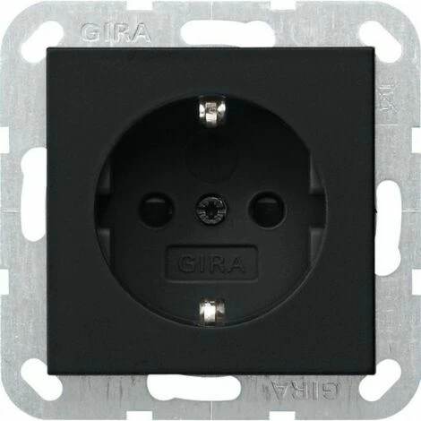 SCHUKO-Steckdose 16 A 250 V mit integriertem erhöhten Berührungsschutz (Shutter) und Symbol Schraubklemmen. Farbe: Schwarz matt. Hinweise: Erhöhter Berührungsschutz gemäß DIN VDE 0620-1.