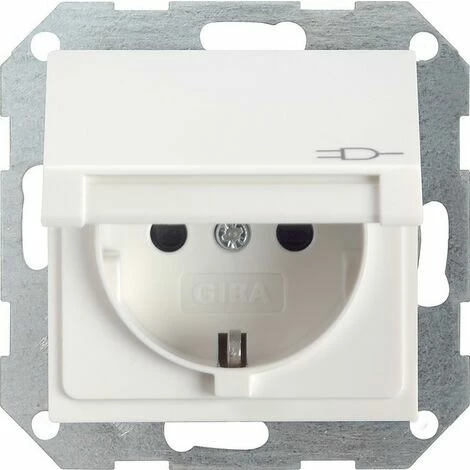 SCHUKO-Steckdose 16 A 250 V~ mit Klappdeckel und Shutter Reinweiß seidenmatt Hinweise : Abdeckrahmen (1- bis 5fach) aus den Schalterprogrammen Standard 55 und Gira E2 in Verbindung mit dem Dichtungsset auch für die Montage von Unterputz-SCHUKO-Steckdosen mit Klappdeckel wassergeschützt IP44 geeignet. Erhöhter Berührungsschutz (Safety Plus) gemäß DIN VDE 0620-1.