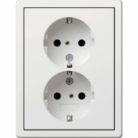 SCHUKO-Doppelsteckdose 16 A 250 V~, komplett mit Abdeckrahmen Reinweiß glänzend Hinweise : Passend in jede handelsübliche Gerätedose. Erhöhter Berührungsschutz (Safety Plus) gemäß DIN VDE 0620-1.