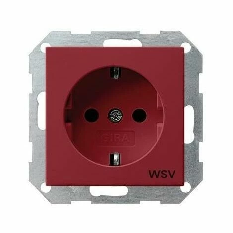 Gira SCHUKO-Steckdose 16 A 250 Vß mit roter Abdeckung und Aufdruck WSV (weitere Sicherheitsversorgung) Rot glänzend Merkmale: – Die Sockel der SCHUKO-Steckdosen sind farblich entsprechend gekennzeichnet.