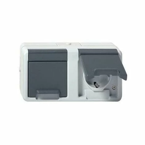 Gira SCHUKO-Doppelsteckdose 16 A 250 Vß waagerecht mit Klappdeckel Grau