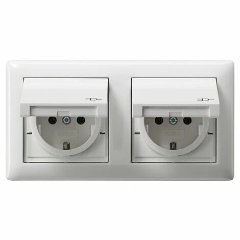 Gira 115803 Schuko-Steckdose rw/gl System55 2-fach m.Klappd.u.Dichtungss.