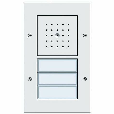 Gira Türstation AP 3fach Reinweiß Merkmale: – Komplett vormontierte Türstation AP für die senkrechte Aufputz-Montage. Dadurch schnelle und saubere Montage möglich. – Im Design des Schalterprogramms Gira TX_44. – Verwindungssteifes Aufputz-Gehäuse durch Aluminiumprofil. – Abdeckrahmen aus bruchsicherem Thermoplast mit hoher UV-Stabilität sowie einer kratzfesten, pflegeleichten Oberfläche. – Diebstahlschutz mittels Torx-Schrauben. – Signalübertragung und Versorgung der Audio- und Videokomponenten über verpolungssicheren und kurzschlussfesten 2-Draht-Bus. – Einmann-Inbetriebnahme durch einfache Inbetriebnahme-Prozedur. – Wetterfester Lautsprecher. – Hochwertiges Elektretmikrofon. – Freisprechfunktion (sprachgesteuertes Gegensprechen mit Echo- und Hintergrund-geräuschunterdrückung). – Akustisches Quittiersignal bei Ruftastenbetätigung. – Sprechlautstärke einstellbar. – Weiße Ruftastenausleuchtung in LED-Technologie. Durch die wartungsfreie und stromsparende LED-Technologie wird eine gleichmäßige, gut sichtbare Ruftastenausleuchtung erreicht. – Spritzwasserdichte Ruftastenabdeckung aus schlagfestem Kunststoff. – Namensschild des Ruftasters ohne Werkzeug und ohne Rahmendemontage austauschbar. – Professionelle Beschriftung über den Gira Beschriftungsservice www.beschriftung.gira.de oder die Gira Beschriftungssoftware. – Geringe Aufbauhöhe von nur 19 mm. Hinweise : – Nicht benötigte Ruftasten lassen sich mit der Ruftastenabdeckung für Ruftaster