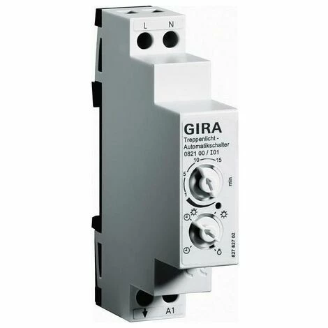 Gira Treppenlichtautomat REG Merkmale: – Manuelles oder automatisches Schalten von Licht in Treppenhäusern. – Einschalten mittels System 2000 und System 3000 Impulseinsatz oder Installationstastern. – Nachlaufzeit einstellbar. – Elektronischer Überlastschutz für den Steuereingang. – Automatikfunktion mit oder ohne Ausschaltvorwarnung. – Licht dauerhaft ein- oder ausschalten. – Einsatz in 3- oder 4-Leiterschaltung.